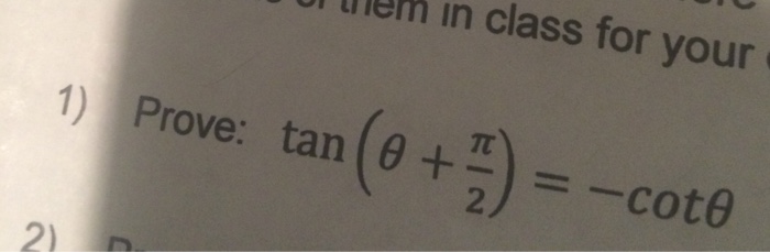 Prove Tan Theta Pi 2 Cot Theta Chegg Com